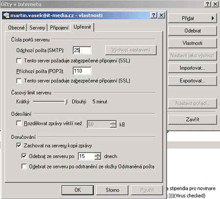 - Nastavení klienta (Outlook Express a další) elektronické pošty