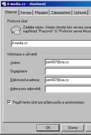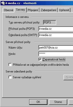 | Uživatelské jméno (název účtu) | Je totožné se jménem Vaší schránky. To znamená, že máte-li zřízenu schránku (nikoliv alias) pnovak v doméně cia.cz, vyplníte do tohoto políčka pnovak@cia.cz. |